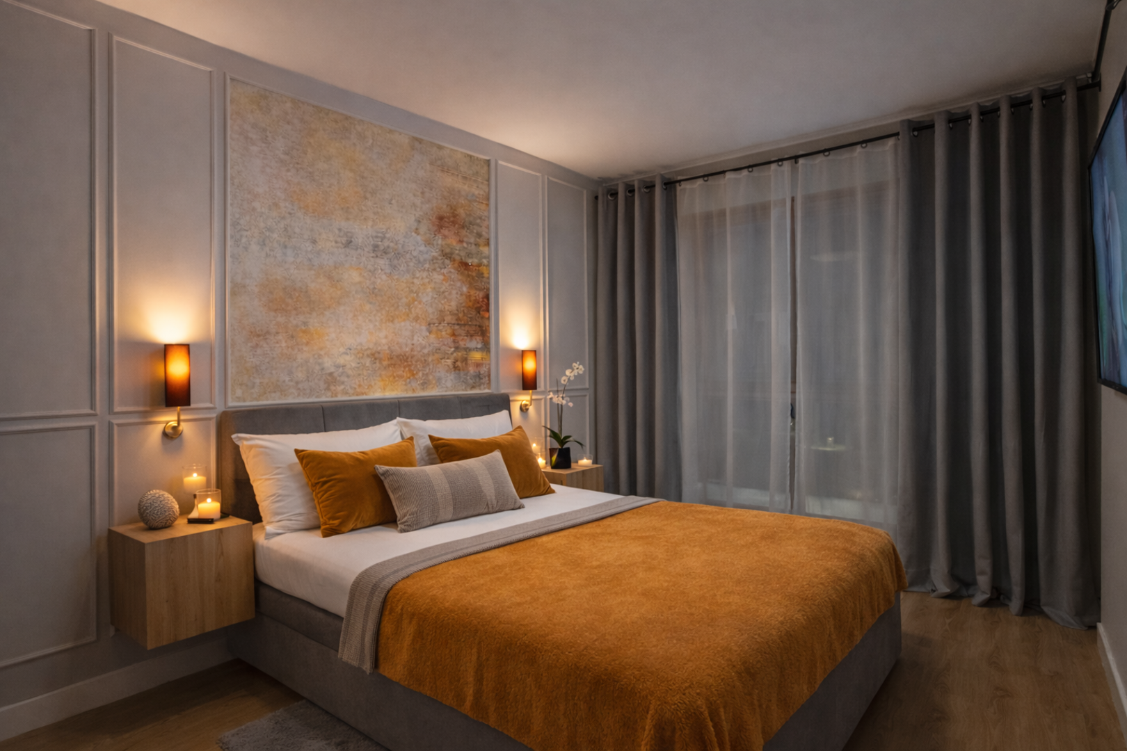 Stylowy i w pełni wyposażony apartament z 2021 roku, położony na 1. piętrze nowoczesnego apartamentowca z całodobową ochroną. Idealny dla 2–4 osób, z możliwością pobytu do 5 osób (dostawka dla dzieci/rodzin).