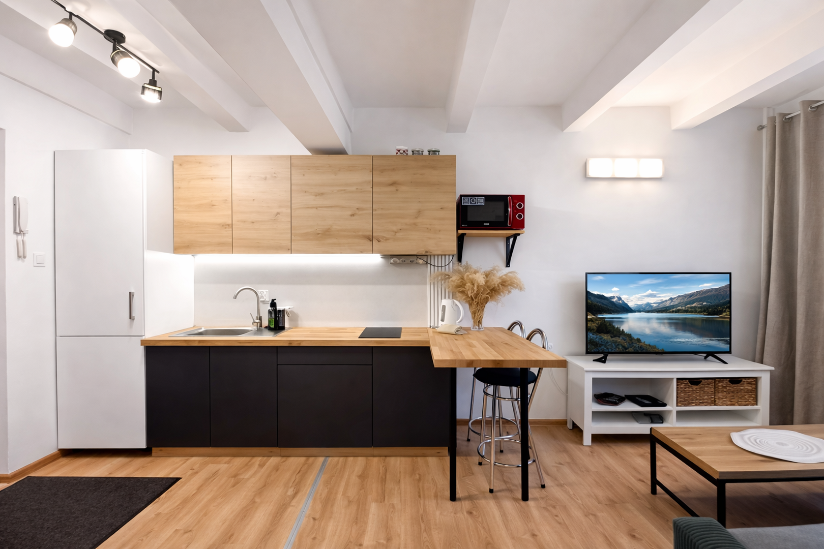 • salon z aneksem kuchennym,