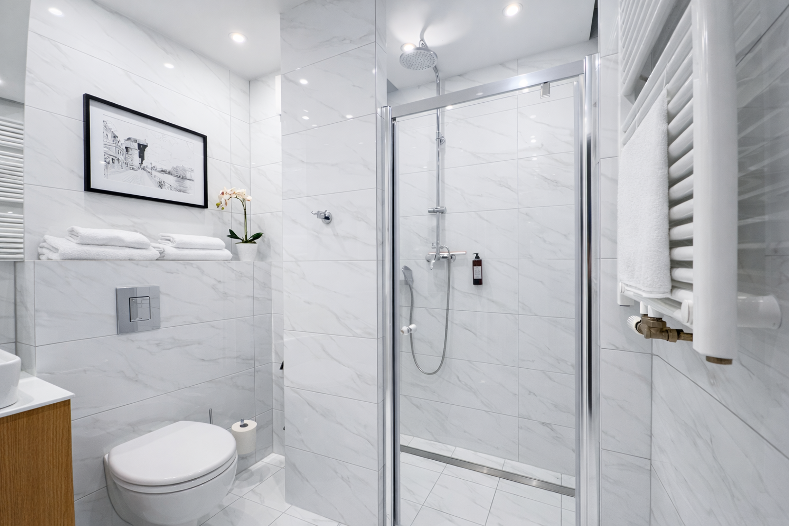 - kabiną prysznicową typu walk-in z deszczownicą,
