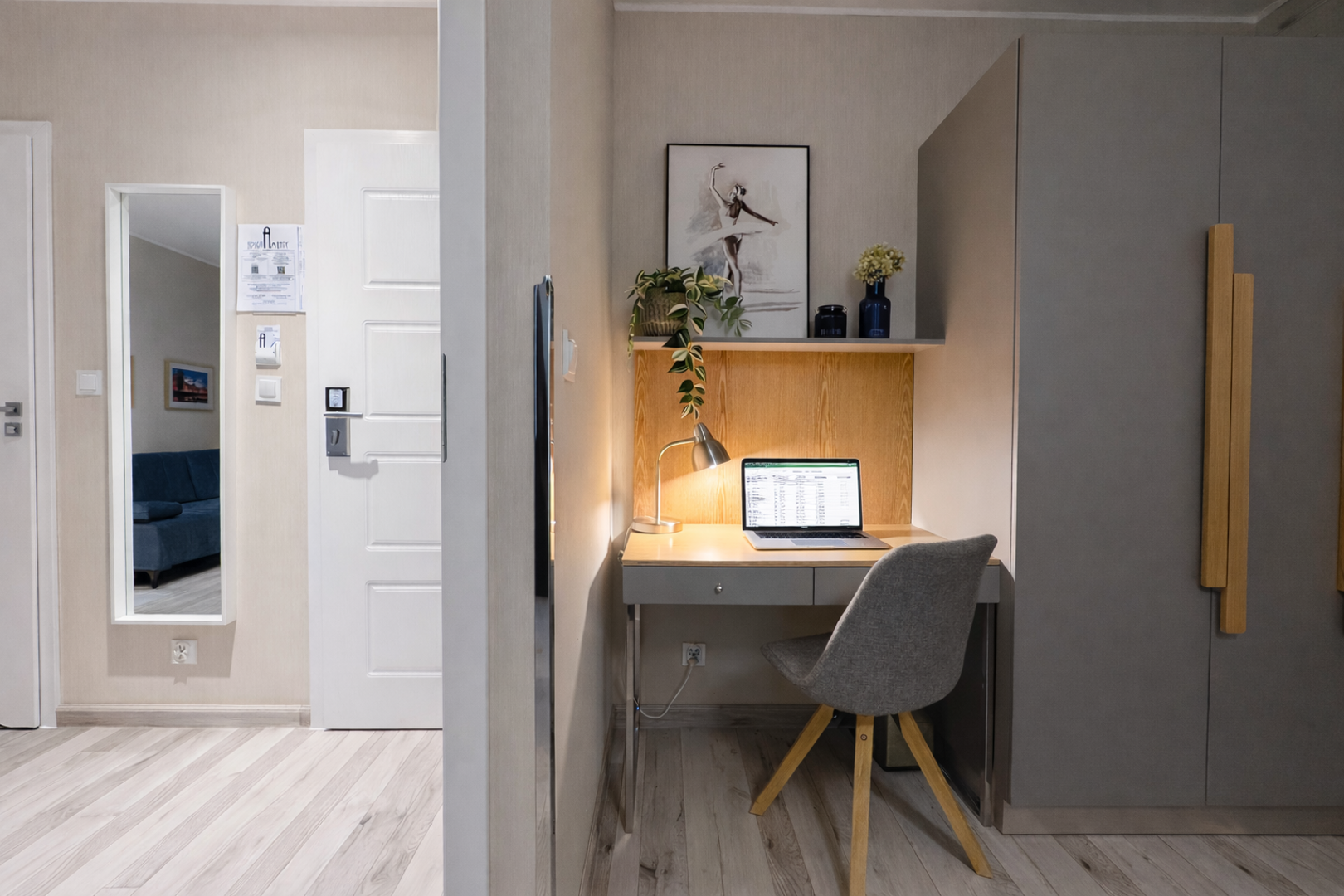 - biurko z krzesłem – wygodne miejsce do pracy.