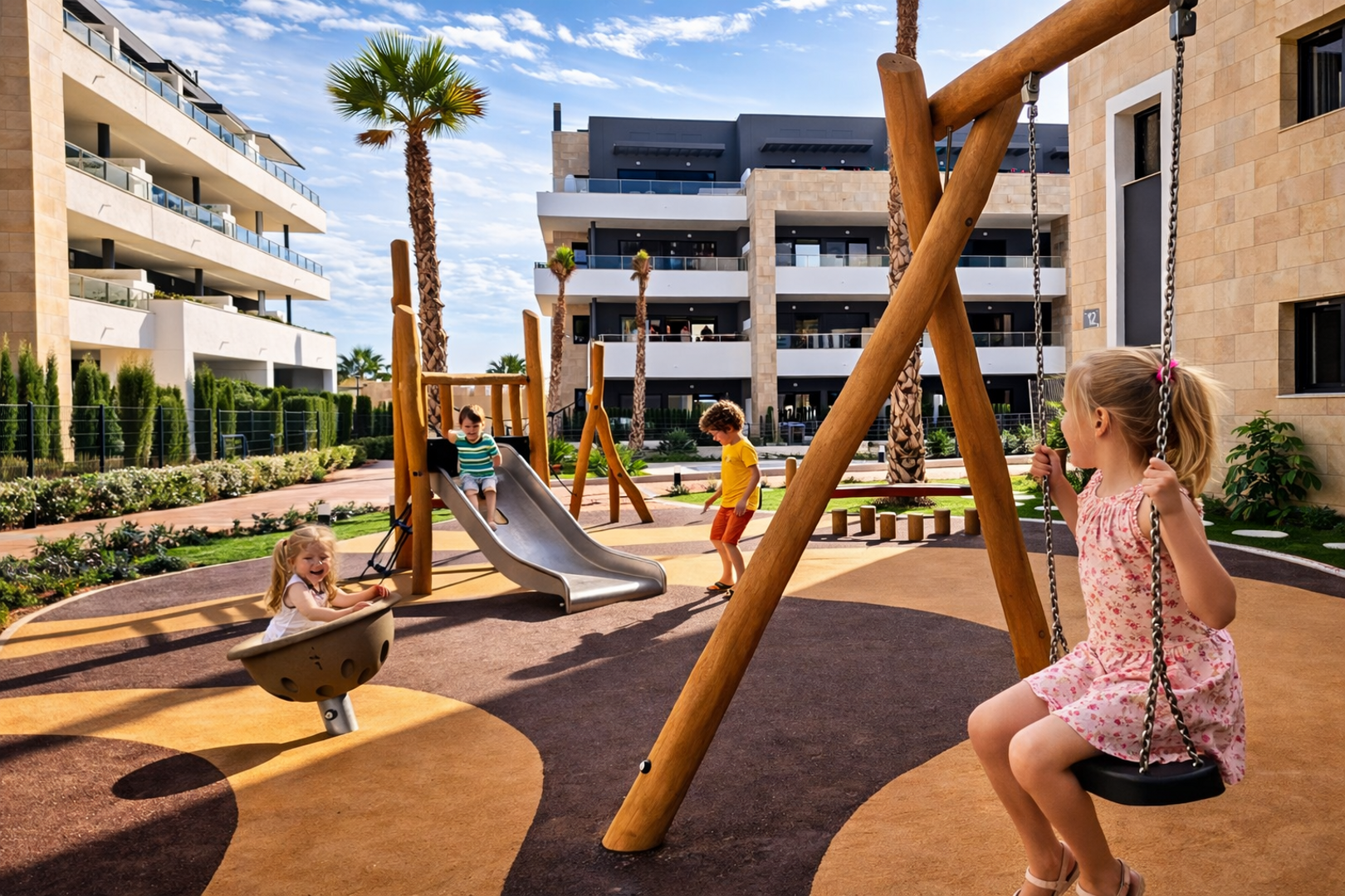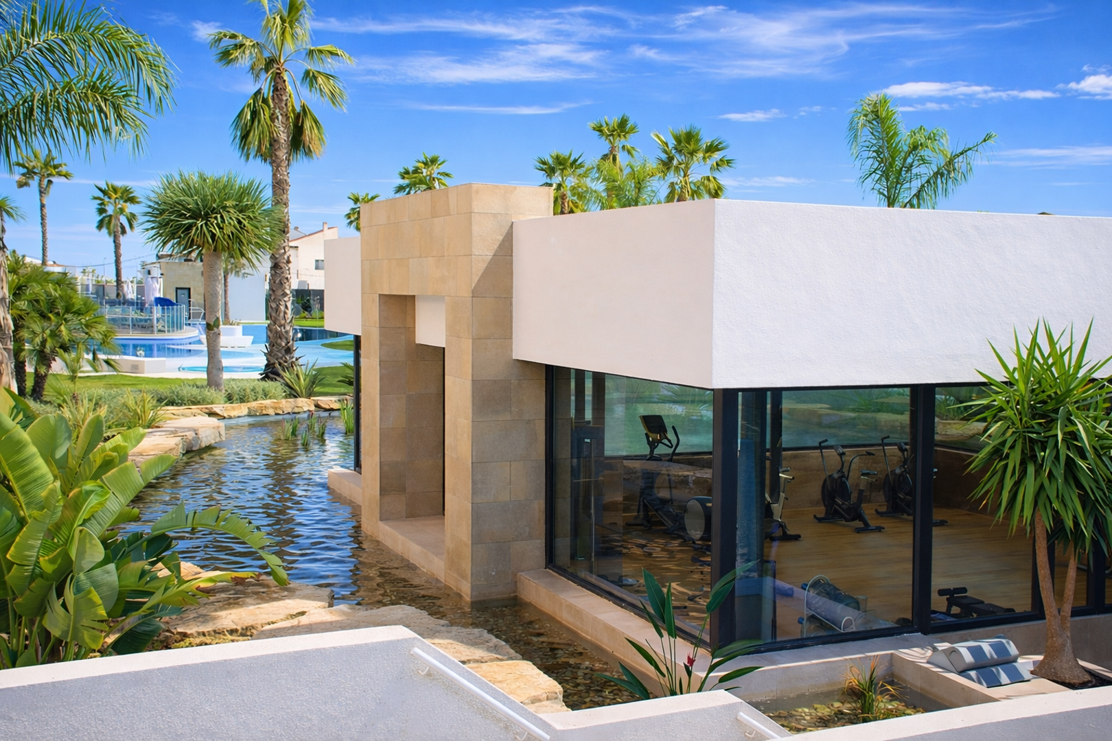 Jest to zamknięte i strzeżone osiedle z niską, nowoczesną zabudową. Na terenie osiedla znajduje się 6 basenów, w tym 3 podgrzewane (jeden z barem). Kompleks jest w połowie zamieszkiwany całorocznie przez właścicieli, a w połowie przez gości wynajmujących apartamenty na wakacje lub krótszy pobyt.