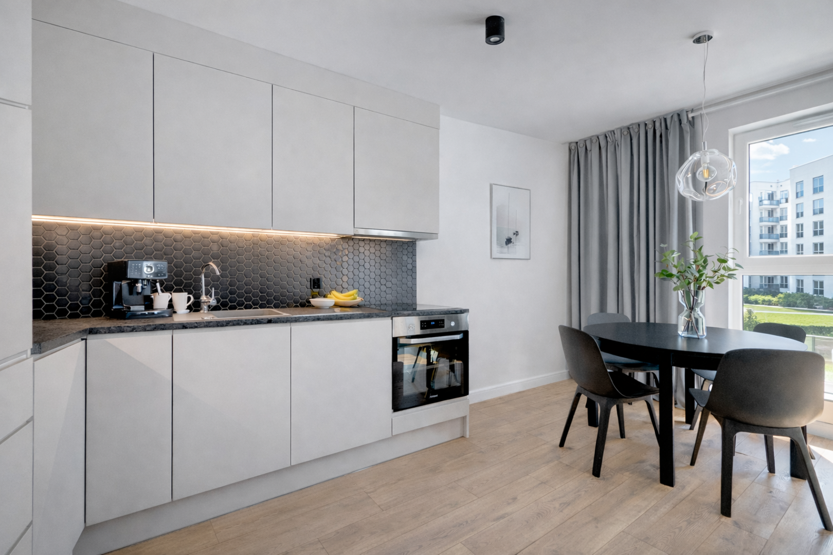 Dodatkową zaletą jest możliwość jednoczesnej rezerwacji bliźniaczego apartamentu znajdującego się drzwi w drzwi. Dzięki temu w obu mieszkaniach może komfortowo przebywać jednocześnie do 8 osób. To idealne rozwiązanie dla rodzin, dwóch par lub grupy znajomych, którzy chcą mieszkać blisko siebie, zachowując jednocześnie wygodę dwóch oddzielnych apartamentów.
